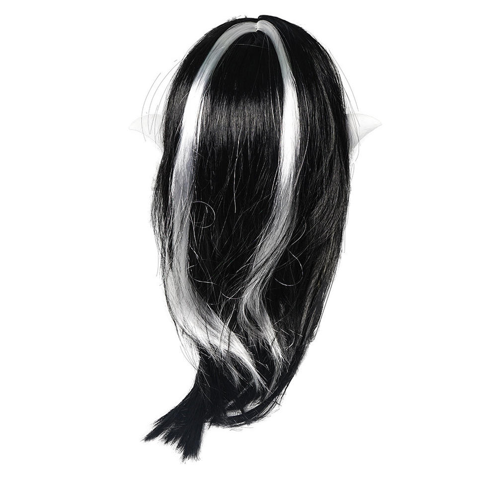 หน้ากากแวมไพร์พร้อมวิกผมสีขาวสีดำซอมบี้น่ากลัวยางฮาโลวีนเครื่องแต่งกายอุปกรณ์เสริม