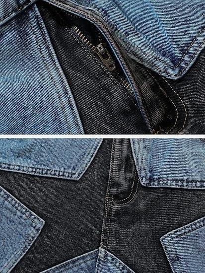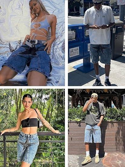 Vamtac Mens Patchwork Denim Shorts Straight Leg Mid Quick Dry Summer Star Jeans Unisex Streetwear Y2K Hip Hop Jorts for Women