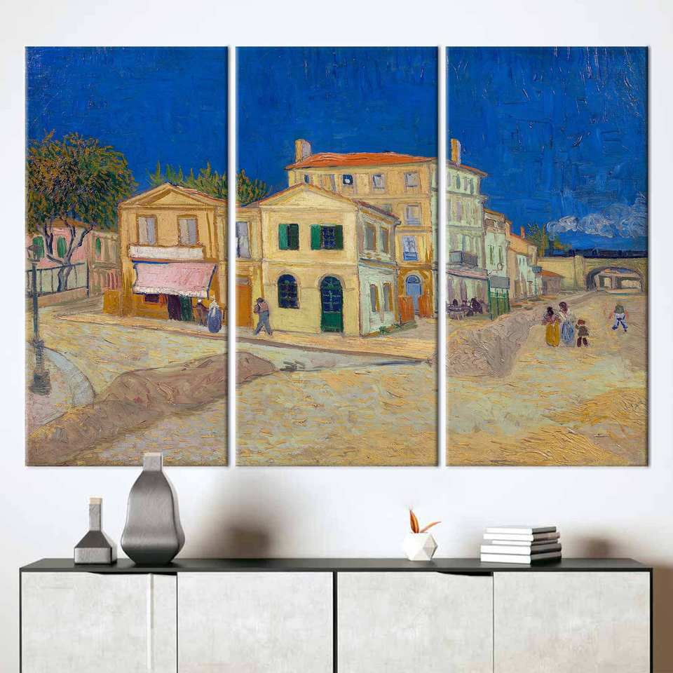ภาพพิมพ์บนผ้าใบศิลปะของแวนโก๊ะ - ภาพทิวทัศน์ถนนที่มีชื่อเสียงสำหรับตกแต่ง,3P: ห่อหุ้มอย่างดี