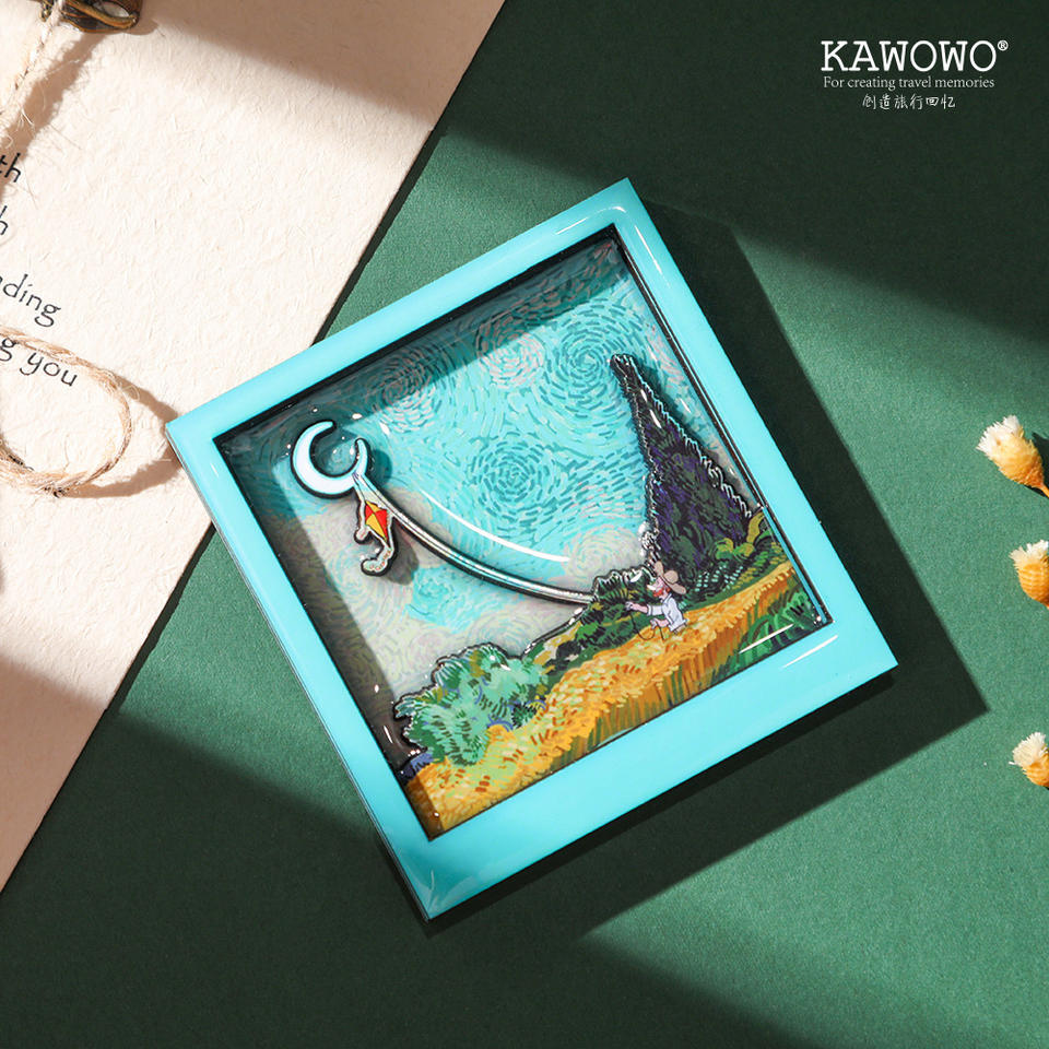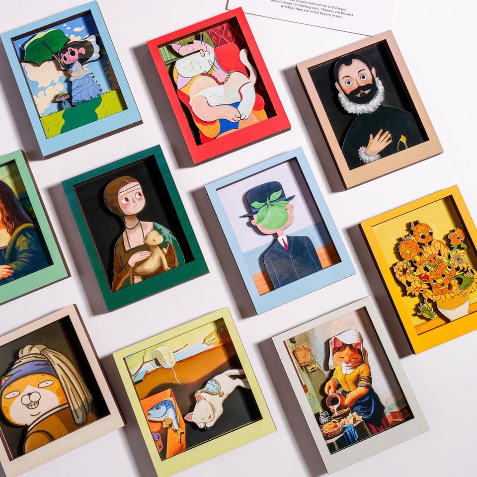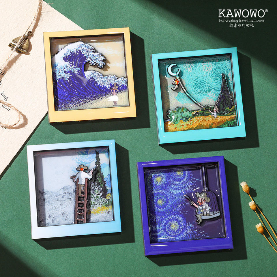 Van Gogh แม่เหล็กติดตู้เย็น2มิติลายการ์ตูนน่ารักออกแบบด้วยไม้ที่สร้างสรรค์และเป็นมิตรต่อสิ่งแวดล้อมสำหรับงานแต่งงาน