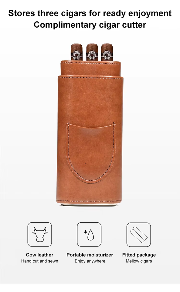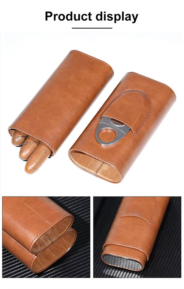 Vanace เคสซิการ์ขนาด3นิ้วสีน้ำตาลพร้อมหนังและเครื่องตัด