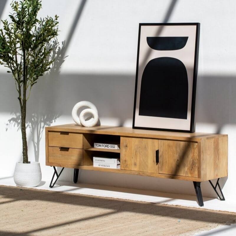 ตู้วางทีวีไม้แวนดานา อัลติส โอไรออน พร้อมชั้นวาง 2 ชั้น ตู้คอนโซลไม้จริงสไตล์มินิมอลทันสมัย