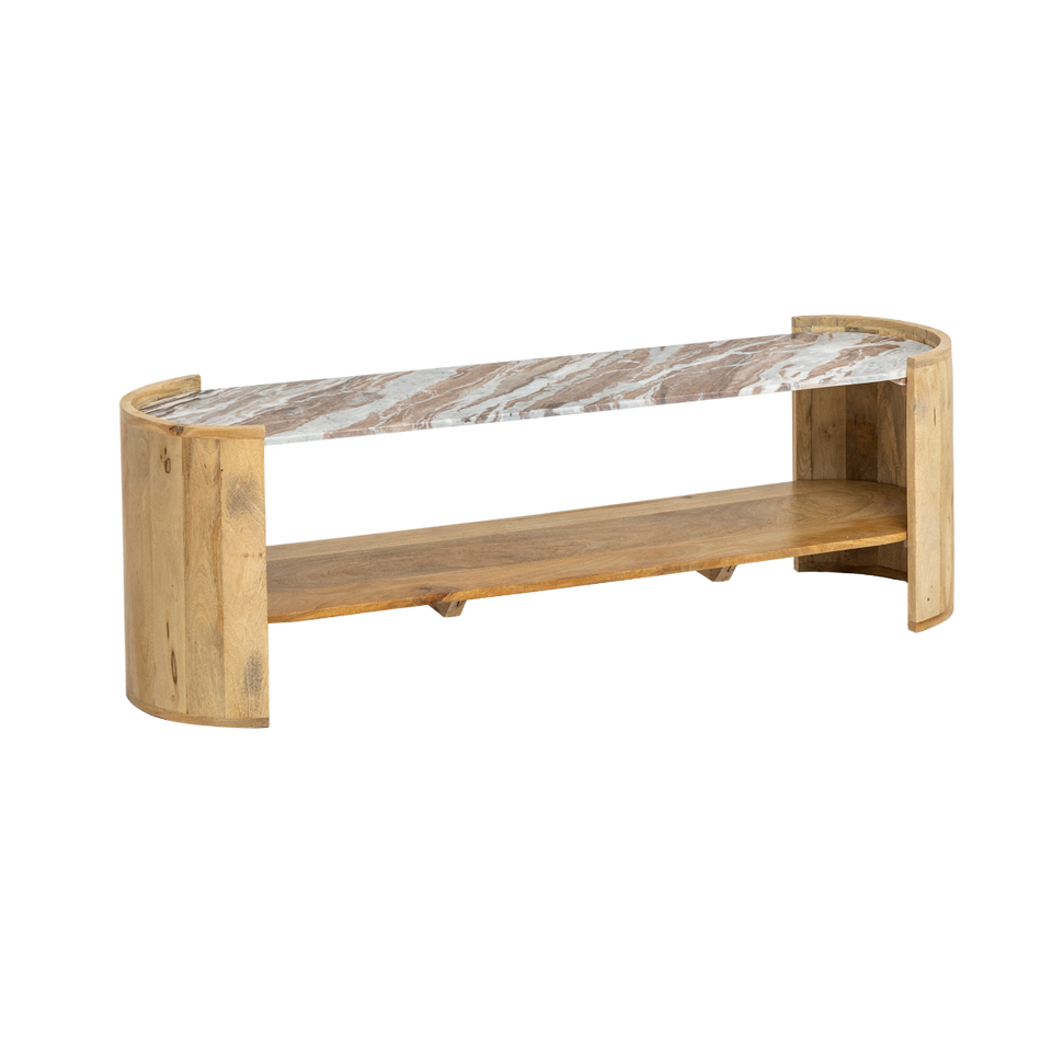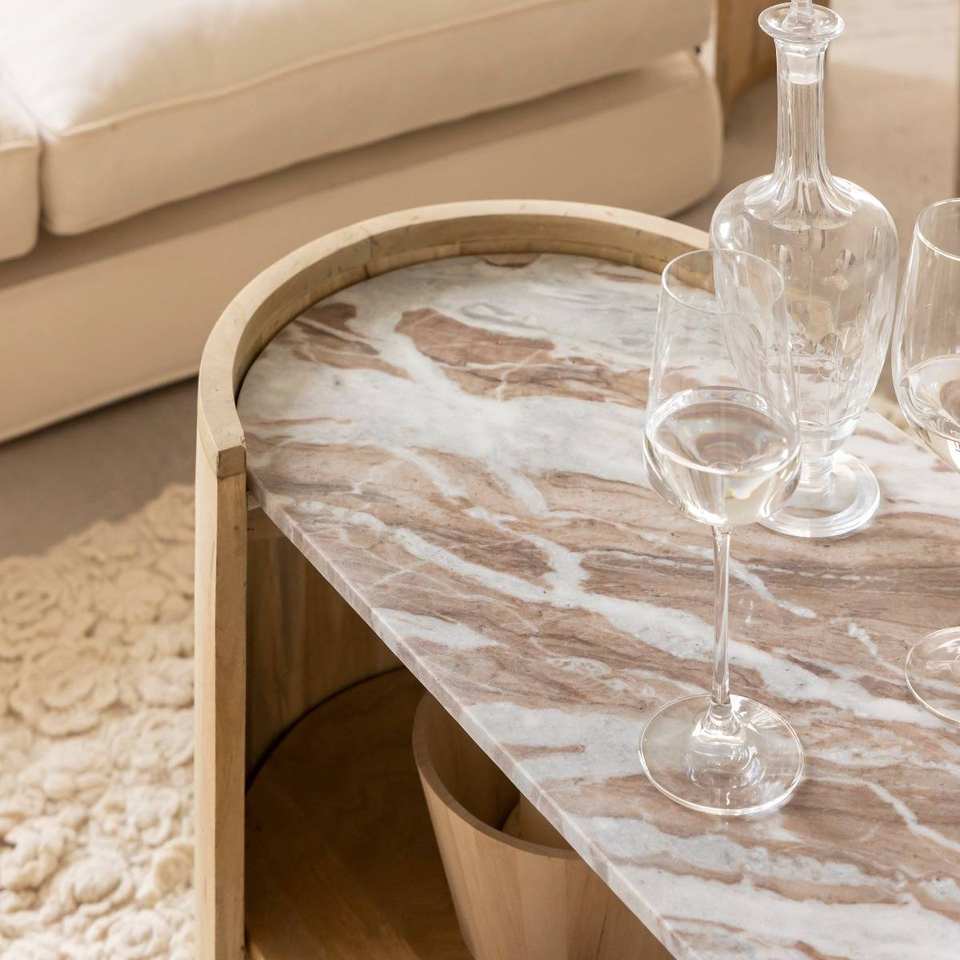 โต๊ะกาแฟทรงวงรี แวนดาน่า แอสตัน เครสต้า ทำจากไม้มะม่วงและหินอ่อน