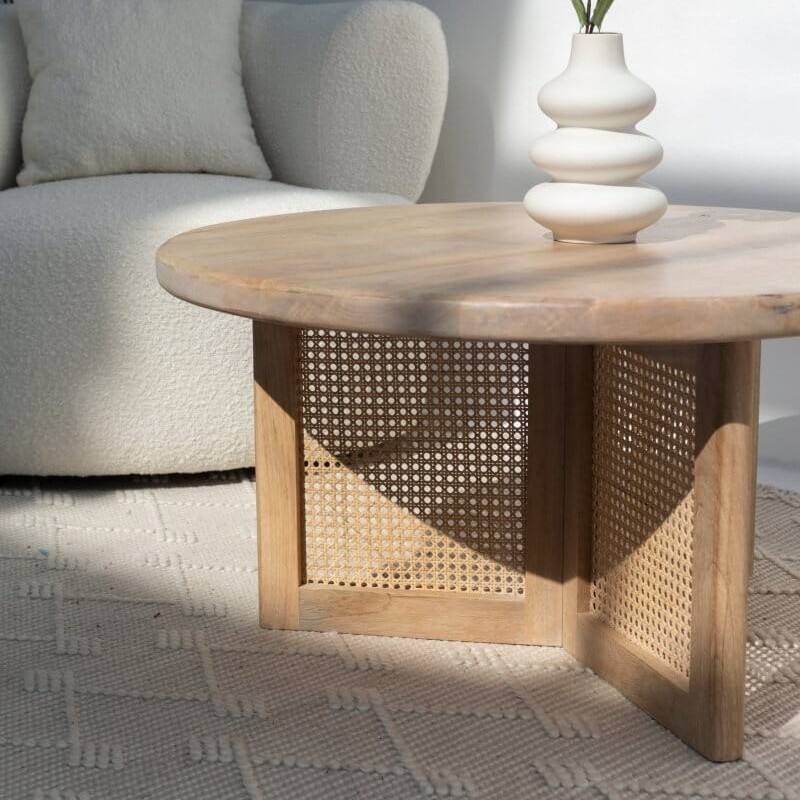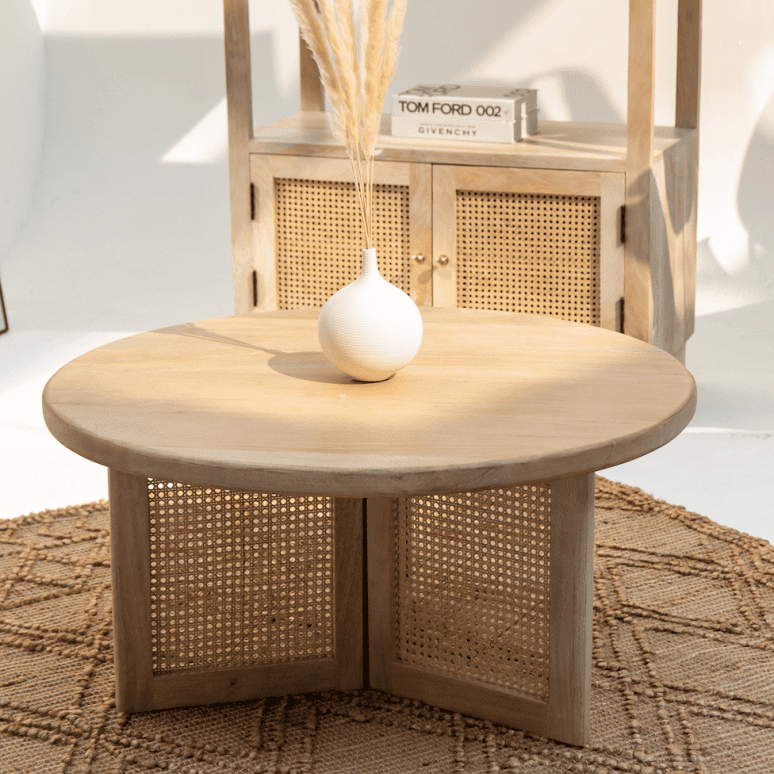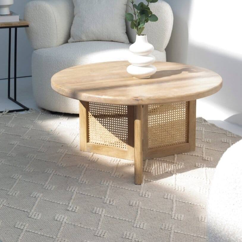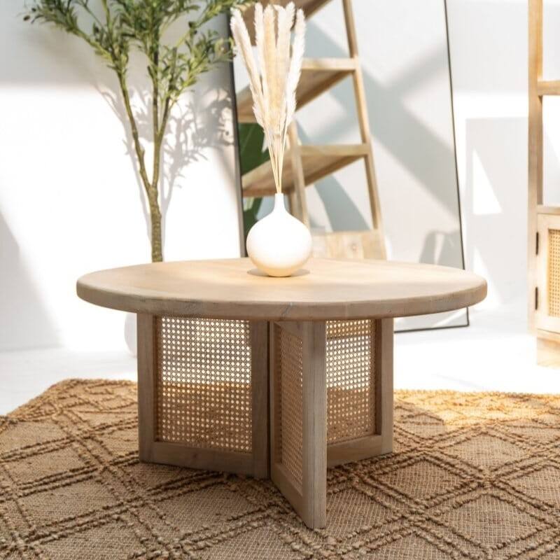 โต๊ะกาแฟทรงกลมขาไม้หวาย รุ่นแวนดานา แอสตร้า เครสต้า สำหรับตกแต่งห้องนั่งเล่นสไตล์โมเดิร์น