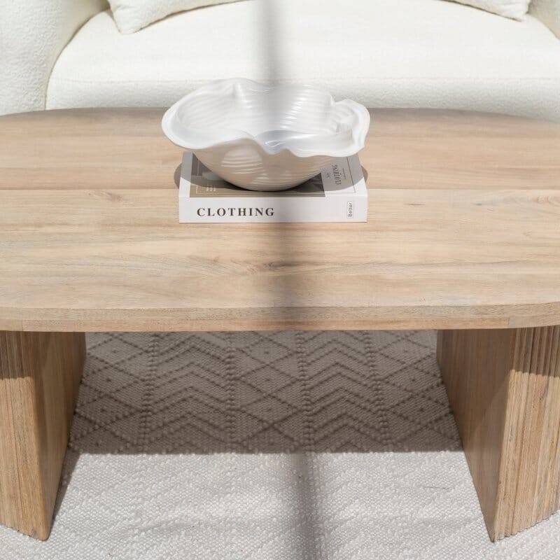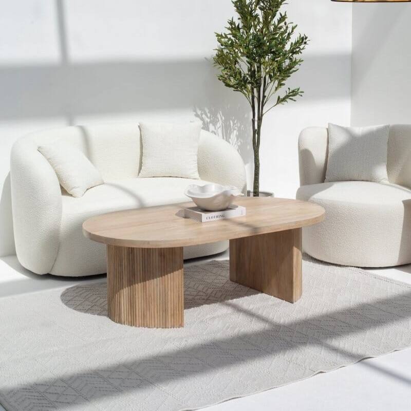 Vandana Astra Radiant Oval-Shaped Wooden Coffee Table for Modern Living Room Interiors
