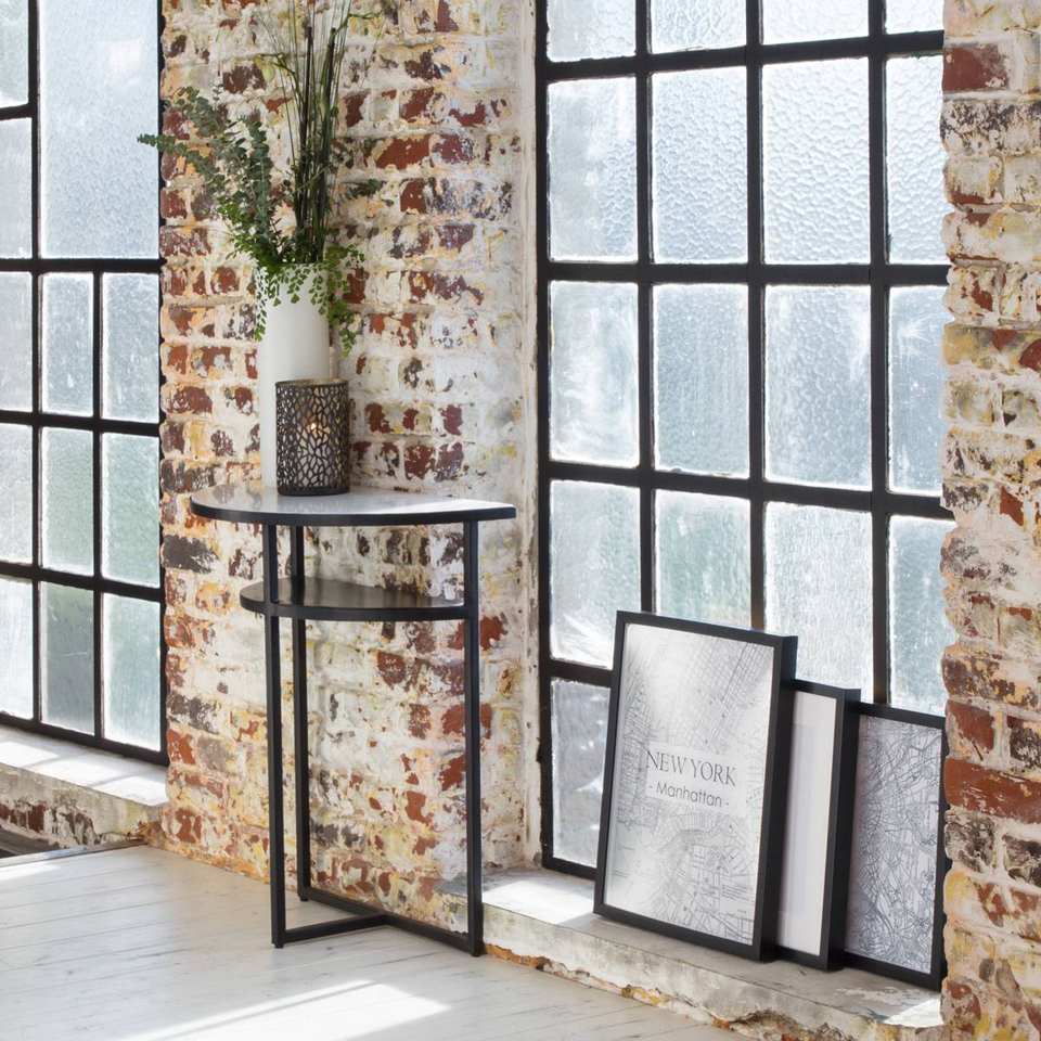 โต๊ะคอนโซลทรงครึ่งวงกลม รุ่นวันดานา เอลารา เทอร์ร่า ทำจากหินอ่อนสีขาวและโลหะ
