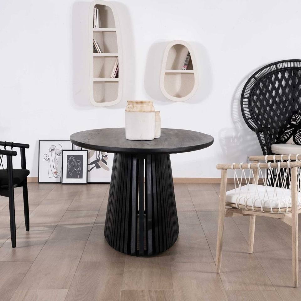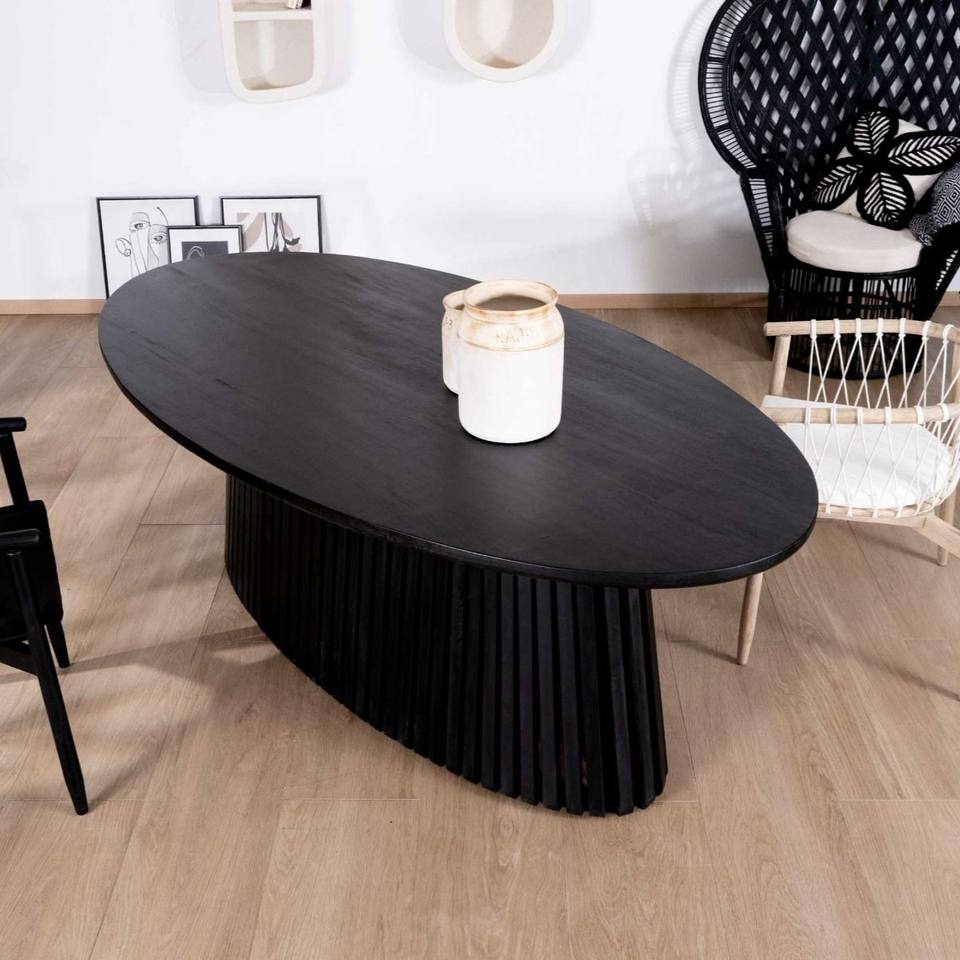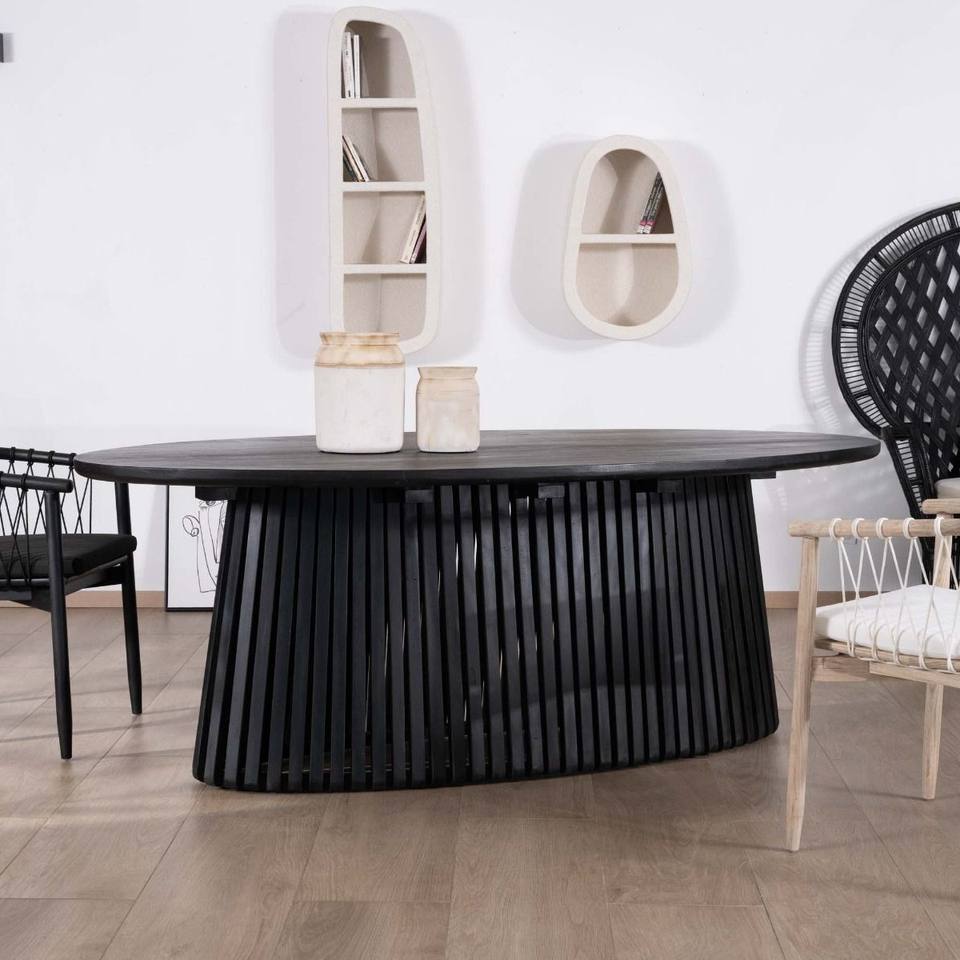 โต๊ะรับประทานอาหาร Vandana Ivory Space ขนาด 210 ซม. ทำจากไม้สักสีดำ พร้อมฐานกลางแบบโปร่ง Dutipi