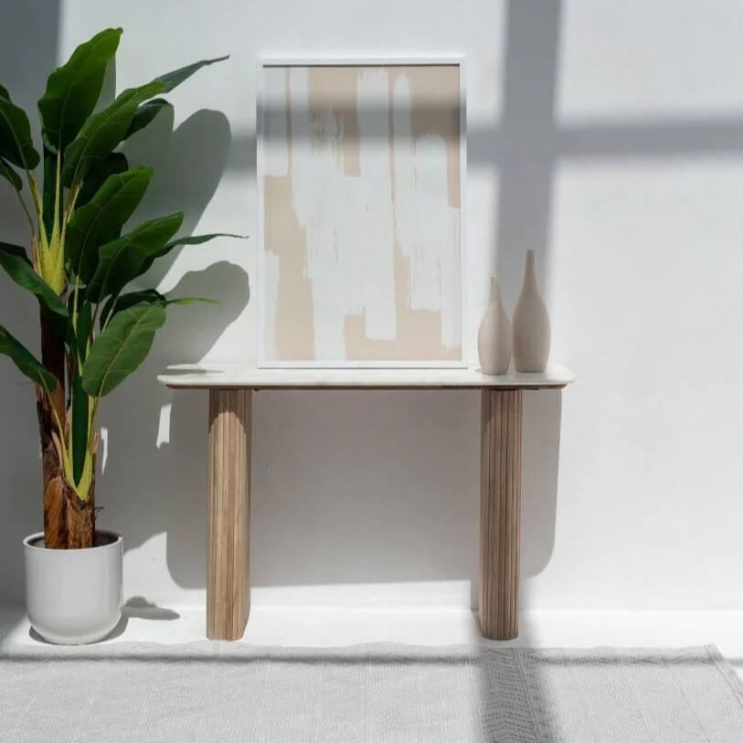 โต๊ะคอนโซลหินอ่อน Vandana Lunaris Altis ดีไซน์หรูหราทันสมัย ตกแต่งด้วยไม้เนื้อแข็ง