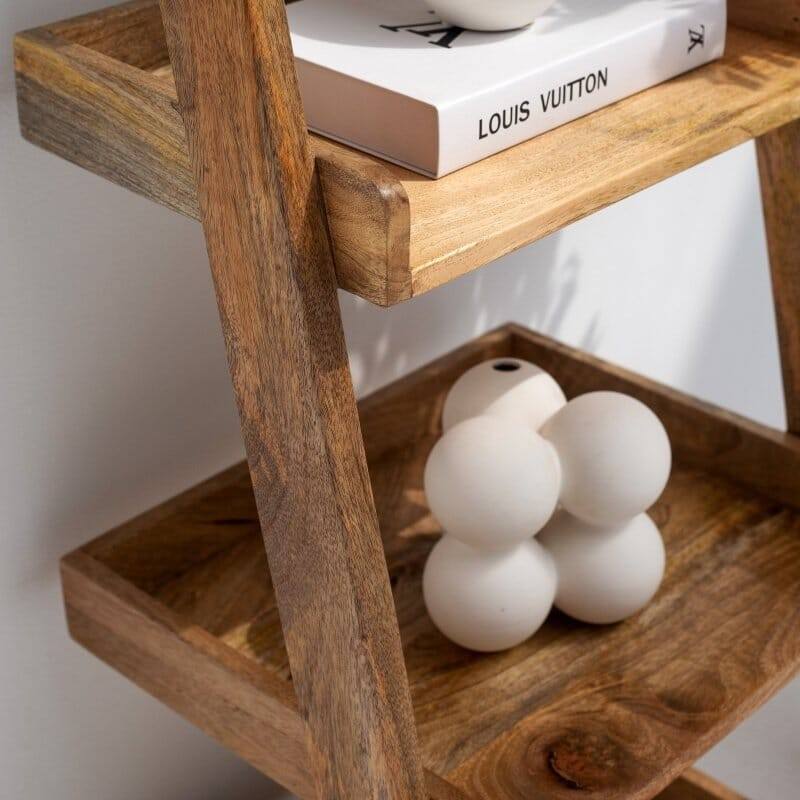 Vandana Merino ชั้นวางบันไดไม้มะม่วงที่ทันสมัยไม้เนื้อแข็งการออกแบบการจัดเก็บที่เรียบง่าย