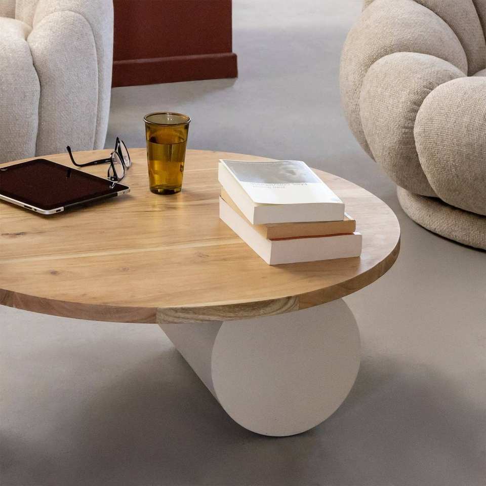 โต๊ะกาแฟทรงกลมวานดานา นิมบัส เอลารา ทำจากไม้ลายคอนกรีตและไม้อะคาเซีย