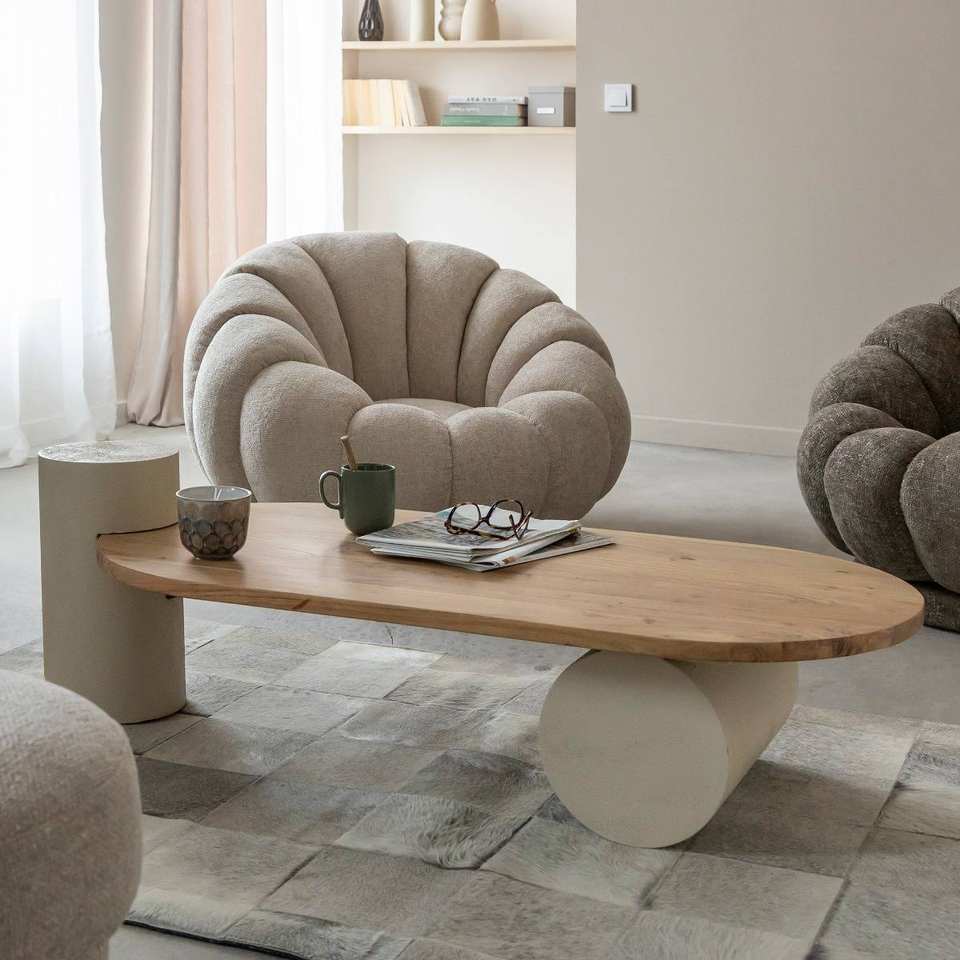 โต๊ะกาแฟทรงวงรี Vandana Nimbus Solace ทำจากไม้ลายคอนกรีตและไม้กระถิน
