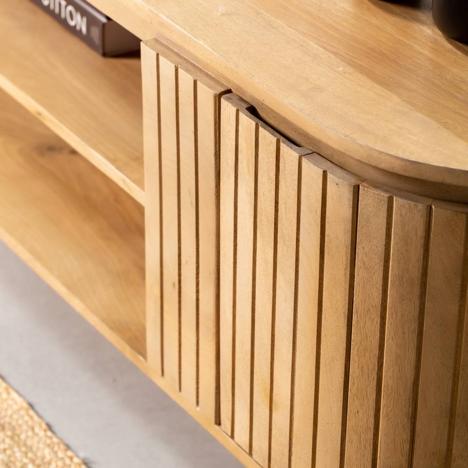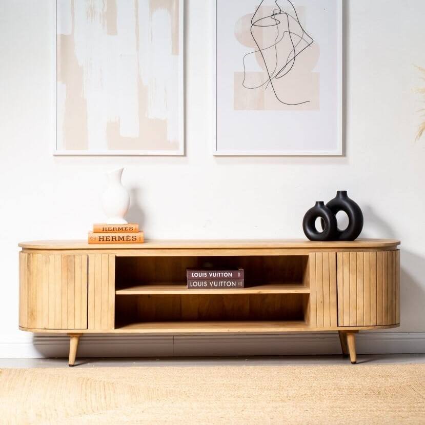 Vandana โนวารานีโอสแลตทีวียูนิตที่ทันสมัยคอนโซลความบันเทิงแบบมินิมอลทำจากไม้เนื้อแข็งที่ทันสมัย