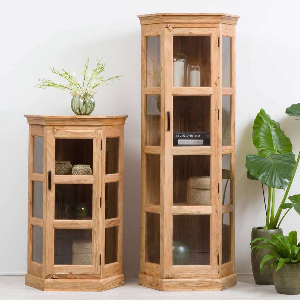 Vandana Optima Orion corner display case in acacia wood, Esmée