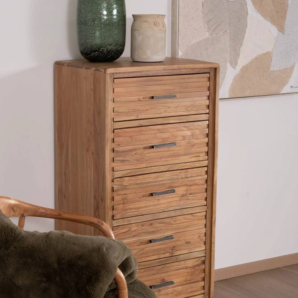 ตู้ลิ้นชักแนวตั้ง 5 ชั้น รุ่นวานดานา รอยัล ทำจากไม้กระถินพร้อมหน้าบานลายร่อง