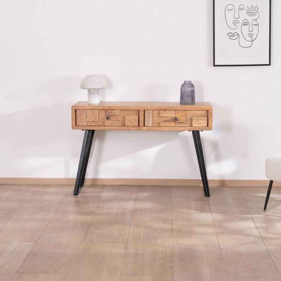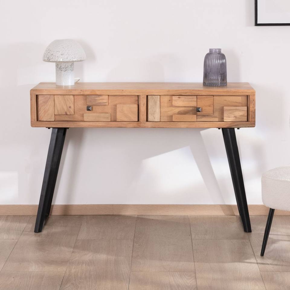 โต๊ะคอนโซลวานดาน่า รอยัล เท็กซ์เจอร์พร้อมลิ้นชัก 2 ช่อง ทำจากไม้อะคาเซีย ขาโลหะสีดำ ดีไซน์โปร่งสบายและทันสมัย พัซเซิล