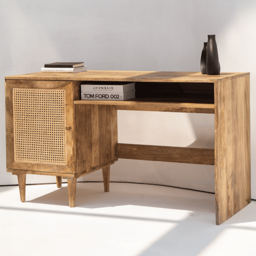 โต๊ะทำงานไม้หวายเมอริโน่ วานดานา เวสต้า แบบธรรมชาติทันสมัย ทำจากไม้เนื้อแข็ง สำหรับสำนักงาน