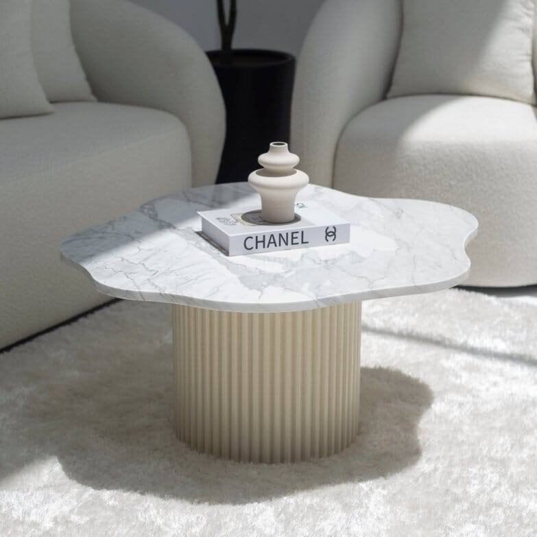 โต๊ะกาแฟหินอ่อนวานดานา เซโนวา นิมบัส สตาทัวริโอรูปทรงไม่สม่ำเสมอ พร้อมตัวเลือกสีฐาน 3 สี