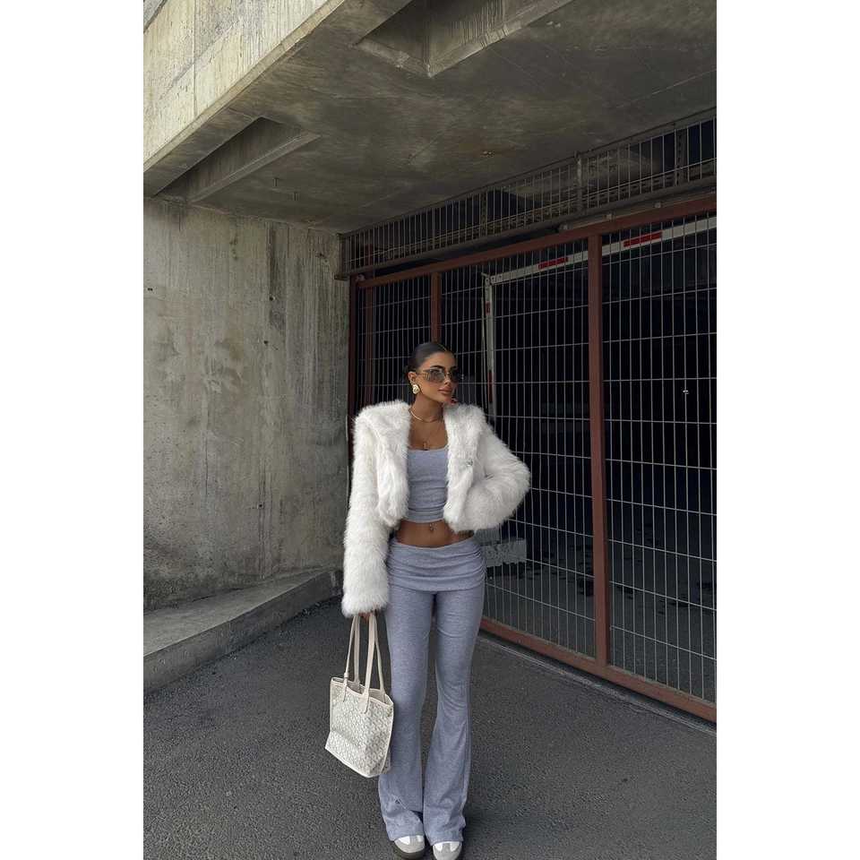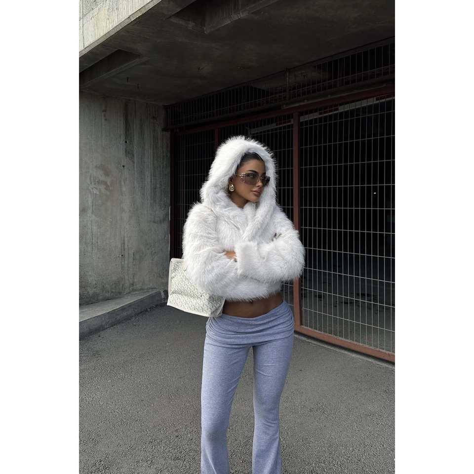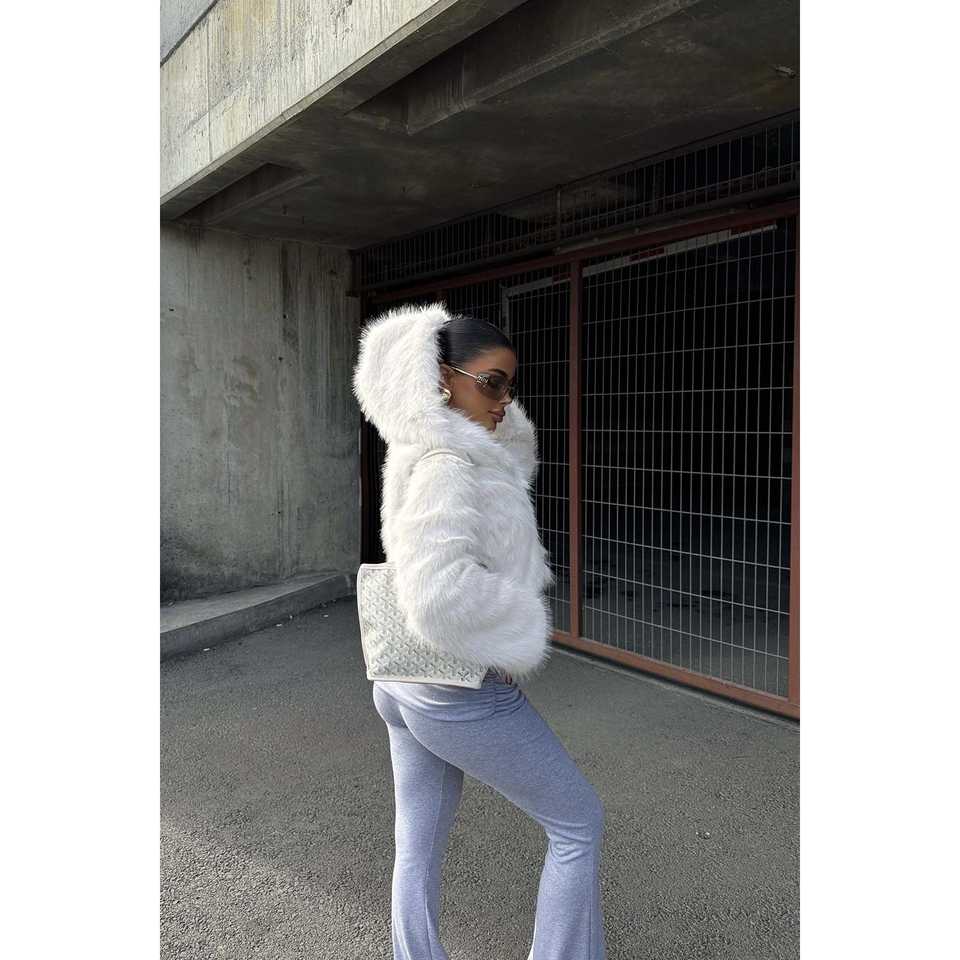 เสื้อโค้ทขนสัตว์สีขาวยี่ห้อ Vania รุ่น White Fox Fur Coat ผ้าวูลย้อมสี ทรงสลิม ดีไซน์ลายพิมพ์ ติดกระดุม มีทั้งแบบยาวและแบบสั้น สีคาเมล ผ้าฝ้าย