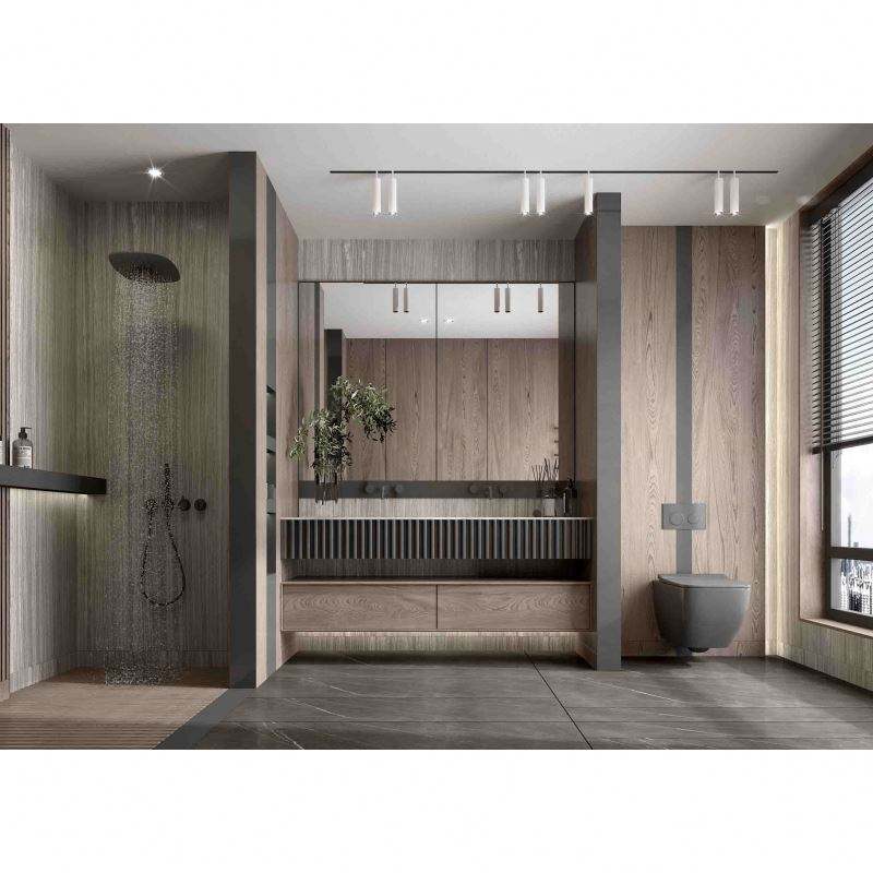 ตู้ห้องน้ำราคาประหยัด พร้อมอ่างล้างหน้าแบบติดผนัง สีไม้ เฟอร์นิเจอร์หินแกรนิต ตู้ห้องน้ำติดผนัง พร้อมกระจก