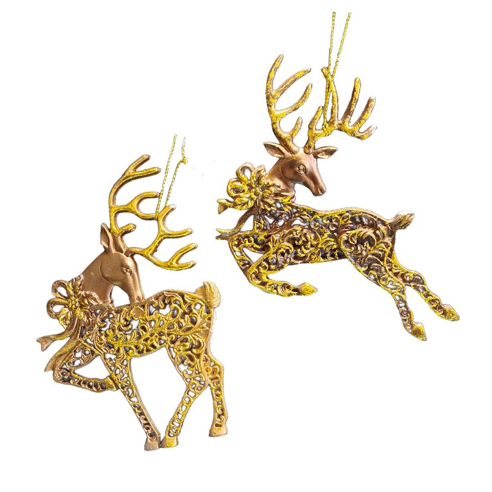 ชุดเครื่องประดับแขวนรูปกวางเรนเดียร์พลาสติกชุดเครื่องประดับคอลเลกชันวันหยุดคริสต์มาส2ชิ้นหลากสี