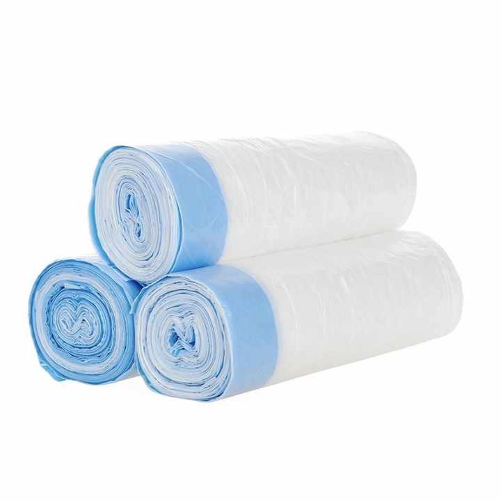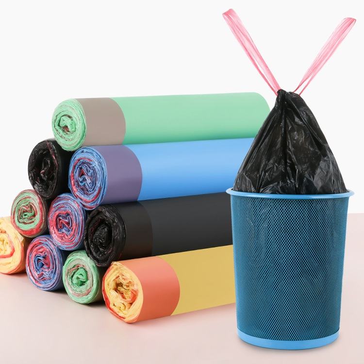 ถุงขยะพลาสติกแบบแบนมีเชือกผูกสำหรับม้วนวัสดุรีไซเคิลแบบใช้แล้วทิ้งสำหรับบรรจุภัณฑ์ซูเปอร์มาร์เก็ตมีหลายสีและขนาด
