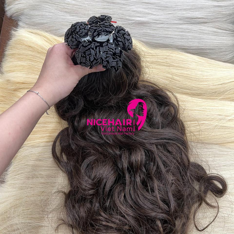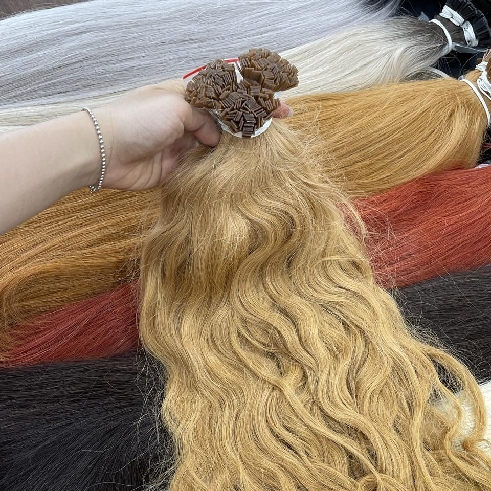 ผมต่อแบบเรมี่เวียดนามแท้ ปลายแบน ไม่พันกัน หลายความยาว ลอนธรรมชาติ น้ำหนัก 100 กรัม ทุกสี