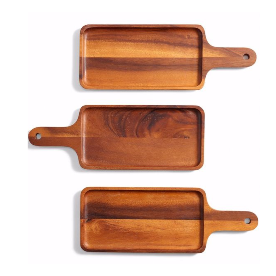 ถาดไม้อะคาเซียธรรมชาติรูปทรงต่างๆถาดไม้อะคาเซียสี่เหลี่ยมสำหรับเก็บของในห้องครัวหลายขนาด