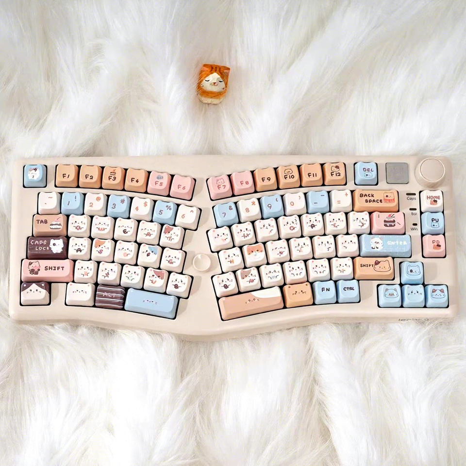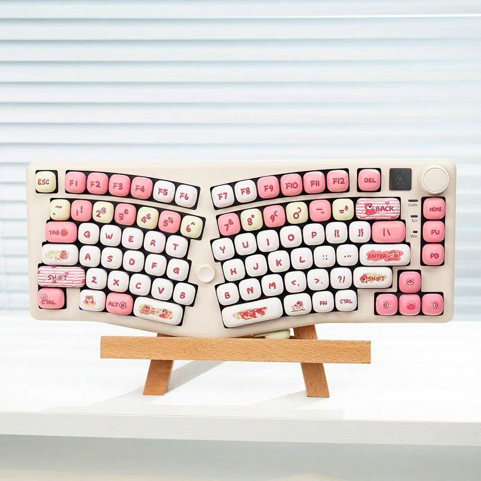 คีย์บอร์ดกลไก Alice รุ่น A75 หลายประเภท - คีย์แคปการ์ตูนแบบสามโหมด ปุ่มสเปซบาร์แบบแยกตามหลักสรีรศาสตร์ สำหรับเล่นเกมอีสปอร์ต