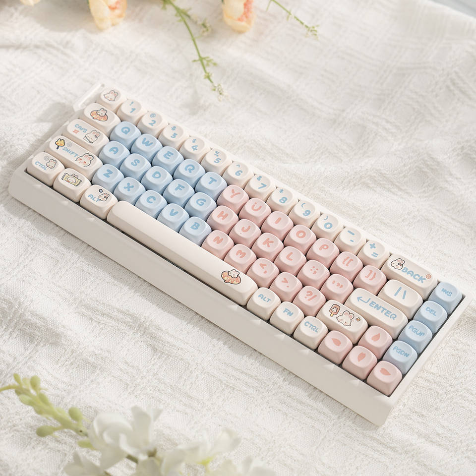 คีย์บอร์ดกลไกแบบสามโหมด M68 หลายรุ่น คีย์แคปการ์ตูน MOG/Mao ไฟ RGB ปรับแต่งได้ สำหรับสาวๆ ใช้ในออฟฟิศ