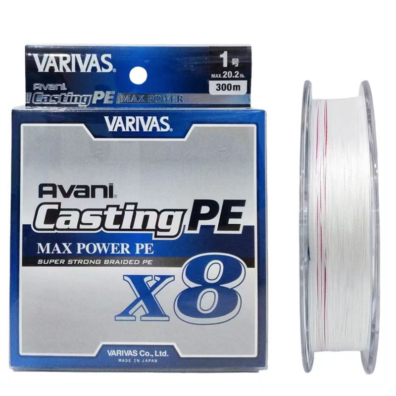 สายเบ็ดตกปลา Varivas X8 Braid แข็งแรงเป็นพิเศษ 8 เส้นใย PE หลายเส้น ความยาว 300 เมตร ผลิตในญี่ปุ่น รองรับน้ำหนัก 20-78 ปอนด์ สำหรับตกปลาทะเล ปลาทูน่า ปลาบาส