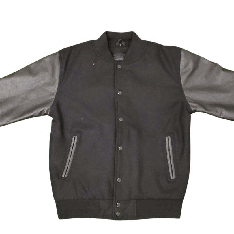 แจ็คเก็ตวาร์ซิตี้ แขนหนัง ตัวเสื้อทำจากผ้าขนสัตว์ สไตล์คลาสสิกแบบนักศึกษา ติดกระดุมแป๊ก เสื้อคลุมลำลอง รับผลิตแบบ OEM ODM ขายส่ง
