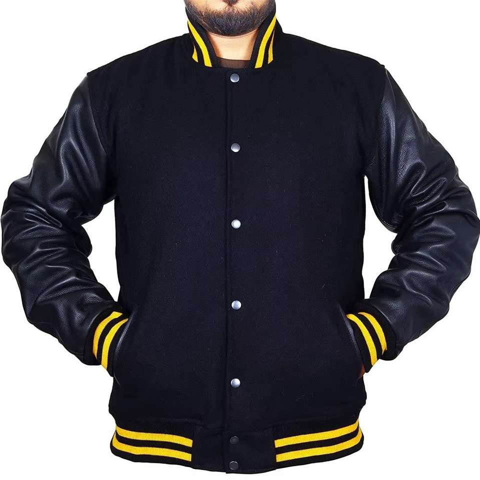 แจ็คเก็ตวาร์ซิตี้ ชายเสื้อแบบริบ แขนหนัง ตัวเสื้อทำจากผ้าขนสัตว์ สไตล์คลาสสิก สำหรับวัยรุ่น ฤดูหนาว กีฬา ทีม กิจกรรม