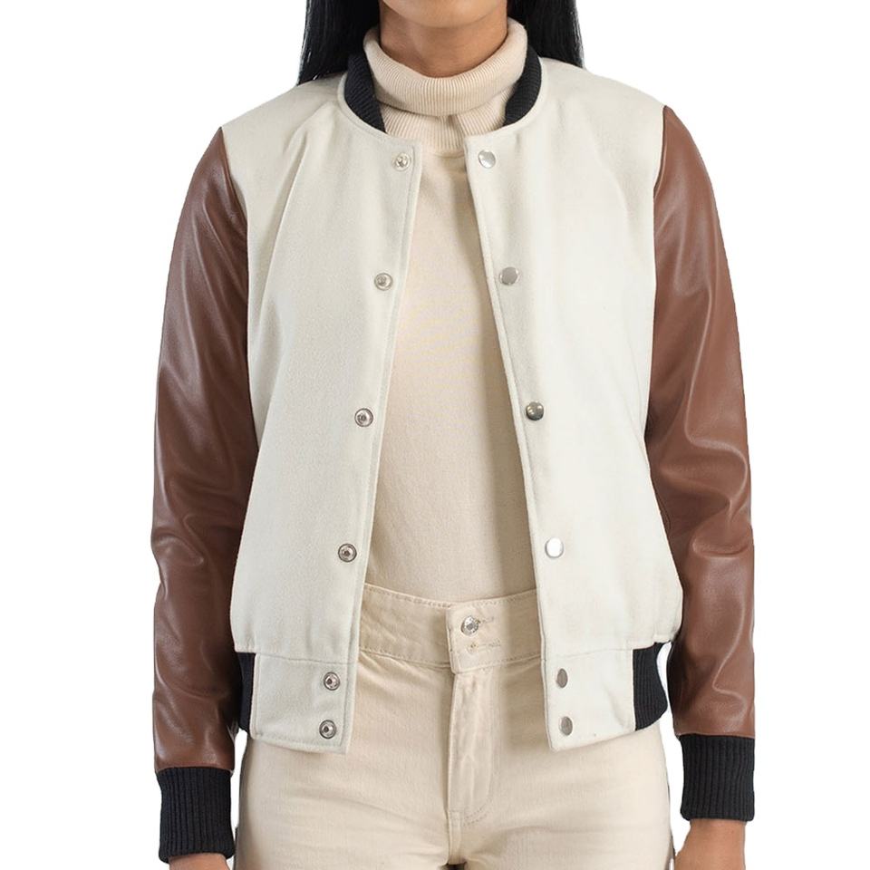 แจ็คเก็ตวาร์ซิตี้ผู้หญิง แฟชั่นนักเรียนมัธยมปลาย แจ็คเก็ตวาร์ซิตี้สีขาวและสีน้ำตาลสุดฮิต แจ็คเก็ตเบสบอลสุดหรู ปี 2026
