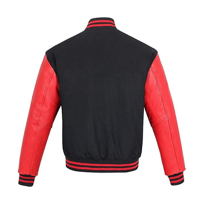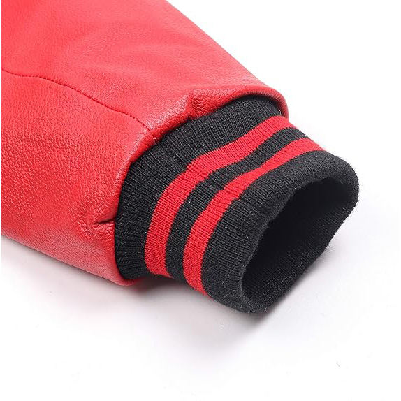 เสื้อแจ็คเก็ตวาร์ซิตี้สำหรับเด็ก ไซส์เด็ก ผ้าขนสัตว์ผสมอะคริลิก แต่งหนัง ปิดด้วยกระดุมแป๊ก เสื้อโค้ททีมโรงเรียน