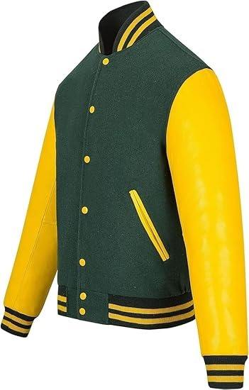 แจ็คเก็ตวาร์ซิตี้สำหรับผู้ชายและผู้หญิง แจ็คเก็ตเลตเตอร์แมนแบบมีโลโก้สั่งทำ แขนหนัง เลือกสีและขนาดได้ตามต้องการ