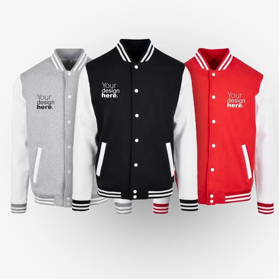แจ็กเก็ตทีมกีฬาเบสบอลแขนเสื้อหนัง PU และขนแกะสำหรับผู้ชายและผู้หญิงงานปักตามสั่ง