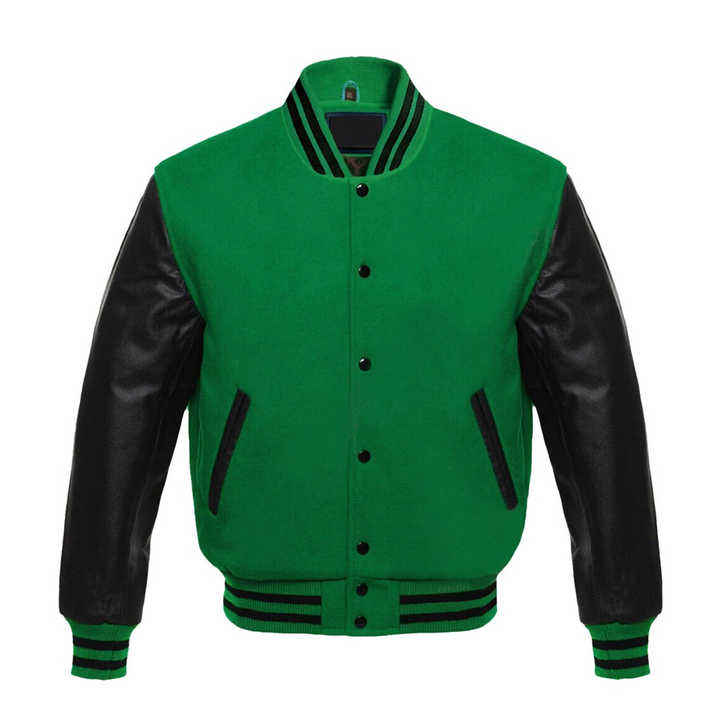 แจ็กเก็ตมหาวิทยาลัยสำหรับผู้ชายหนังแท้เปิดไหล่ดีไซน์เบสบอลฤดูหนาว