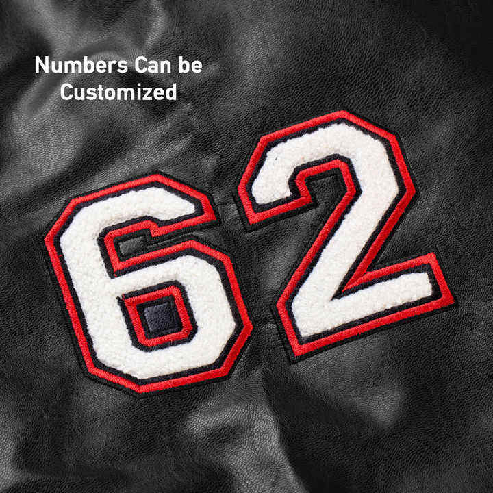 แจ็คเก็ตเบสบอลสไตล์วินเทจสำหรับผู้ชายเสื้อแจ็กเก็ตเบสบอลปักแขนหนังแท้มีแผ่นปะติด