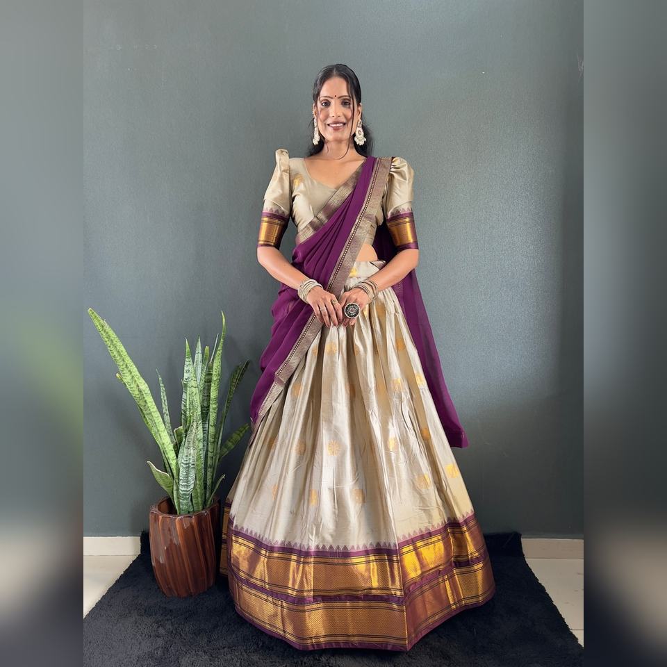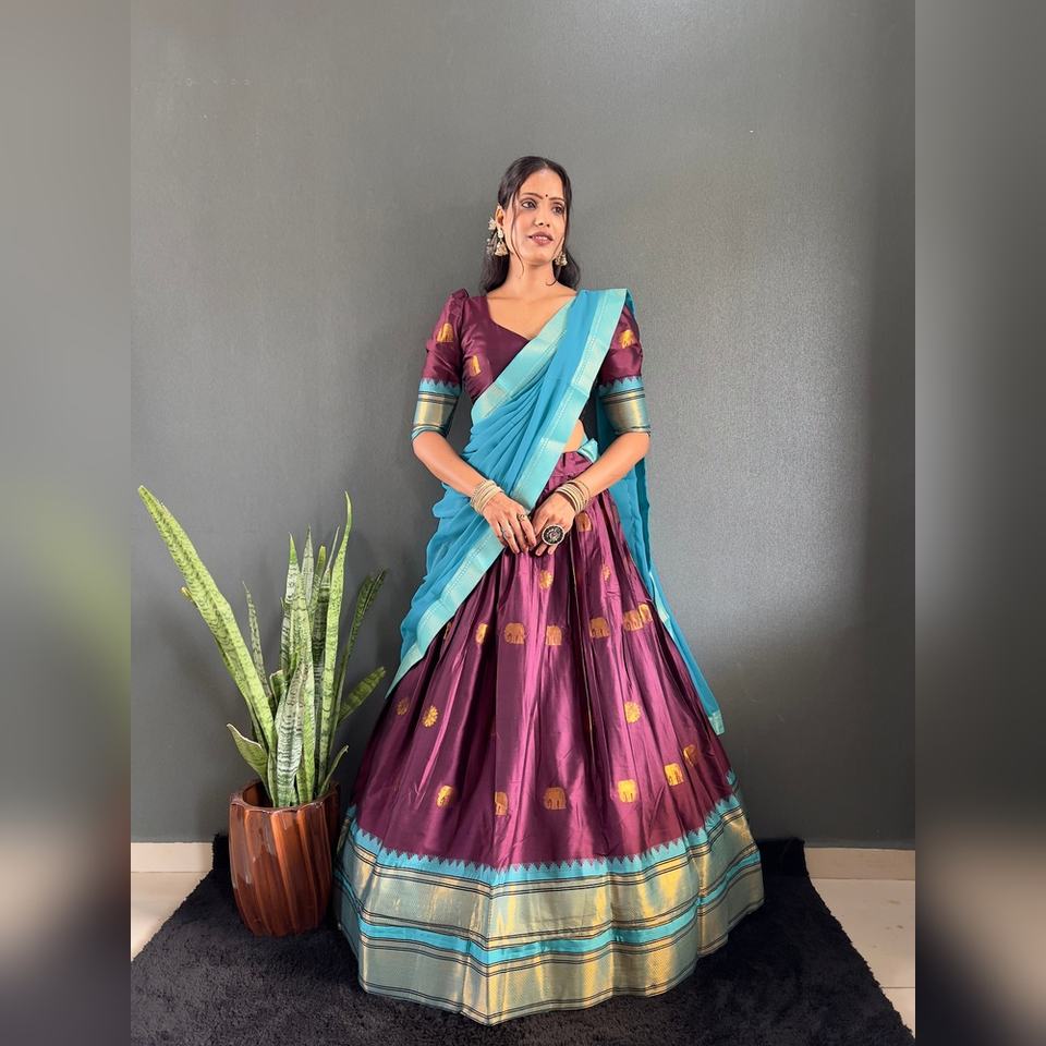 ชุดเลเฮนกาโชลีผ้าฝ้ายวารุนีแบบยังไม่เย็บและแบบเย็บสำเร็จ พร้อมผ้าคลุมไหล่ สำหรับงานแต่งงานแบบอินเดีย ออกแบบโดยดีไซเนอร์ ขายส่ง