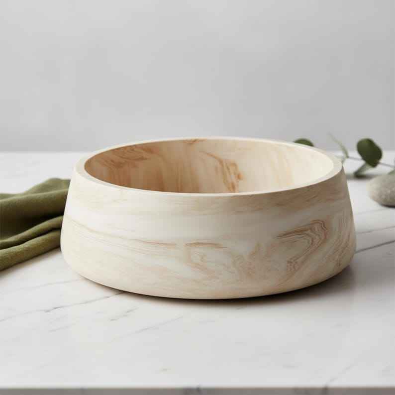 ชามขนาดใหญ่สีเบจแกะสลักด้วยมือ