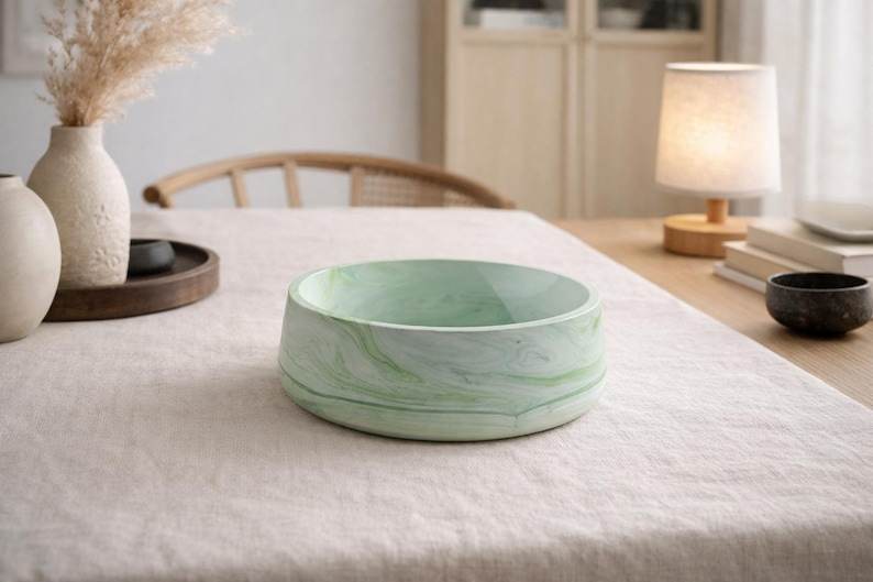 ชามอาหารสัตว์เลี้ยงทรงกลมลายหินอ่อน VaryWell ขนาด 400 มล. 850 มล. 1800 มล. ทำจากเรซิ่น PET คุณภาพสูง พร้อมโลโก้สีตามสั่งโดย UO