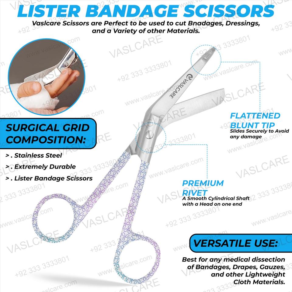 Vaslcare กรรไกรตัดผ้าพันแผลสำหรับทำแผลทางการแพทย์รูปแบบแอบสแตรกไม่เหมือนใครมีใบมีดปลายทื่อสำหรับวัตถุประสงค์ในการผ่าตัด
