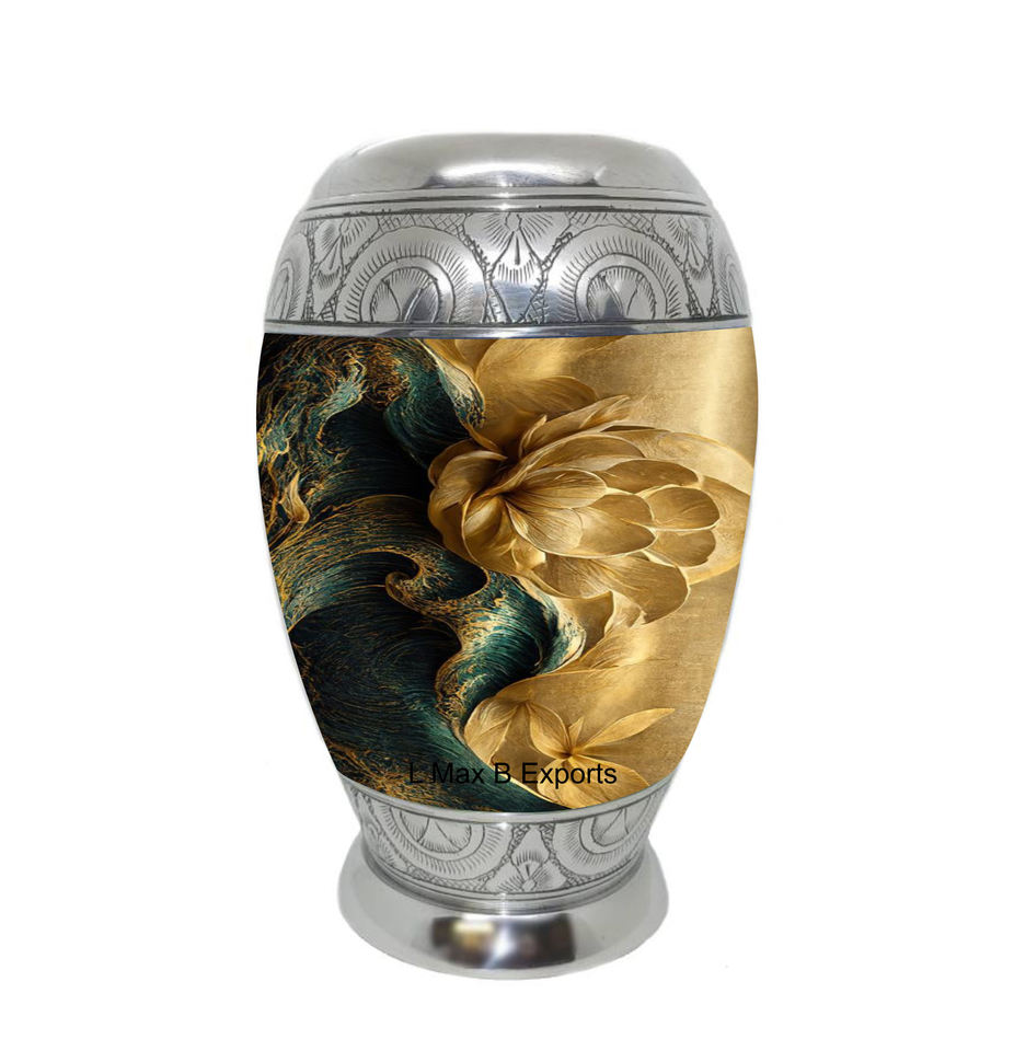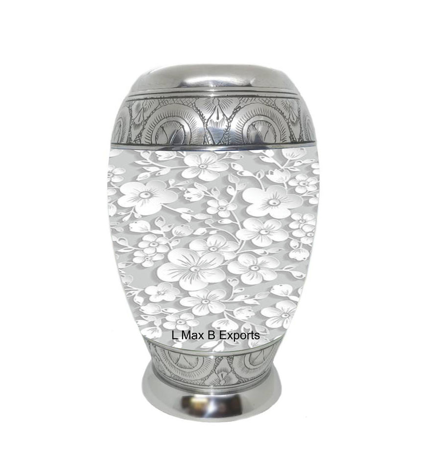 โกศใส่เถ้ากระดูกมนุษย์ไร้ตะเข็บลายดอกซากุระสีเทาเวกเตอร์พร้อมถุงกำมะหยี่ฟรี