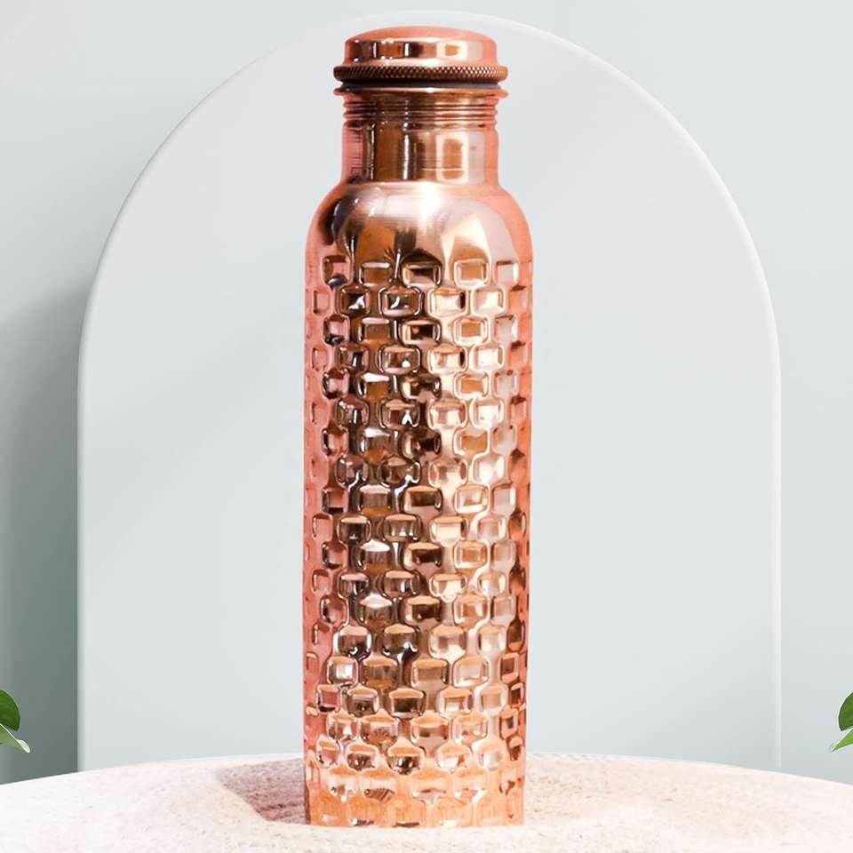 ขวดทองแดงทำมือจาก Vedela Naturals เป็นมิตรกับสิ่งแวดล้อม ความจุขนาดใหญ่ สำหรับเครื่องดื่มแบบดั้งเดิมของอินเดีย สไตล์ชนบท