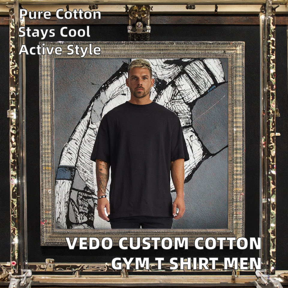 เสื้อยืดแขนสั้นผู้ชาย Vedo ผ้าฝ้าย 100% น้ำหนัก 180 กรัม ระบายอากาศได้ดี สไตล์สปอร์ต ไซส์ EU สำหรับออกกำลังกายและฟิตเนส