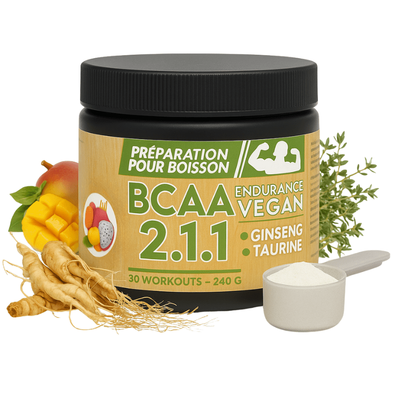 BCAA 2.1.1 Vegetable, Taurine, Dry extract of American Ginseng root Panax Quiquefolius, Pyridoxine HCL (Vitamin B6), DL-Alpha-Tocopherol acetate (Vitamin E)Main Ingredient