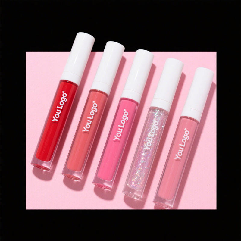 ลิปกลอสมิแกนแบบวีแกนลิปกลอสเนื้อแมทเคลือบเงาสีแดงดำนู้ดสีม่วงติดทนนานจากผู้ขาย