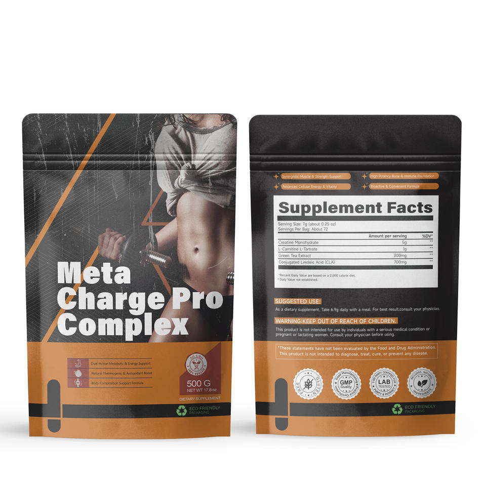 วีแกน ปราศจาก GMO ได้รับการรับรอง COA GMP เมตา ชาร์จ โปร คอมเพล็กซ์ ครีเอทีน โมโนไฮเดรต ปราศจากน้ำตาล 7 กรัมต่อหนึ่งหน่วยบริโภค ชนิดผง ปรับแต่งได้ตามต้องการ