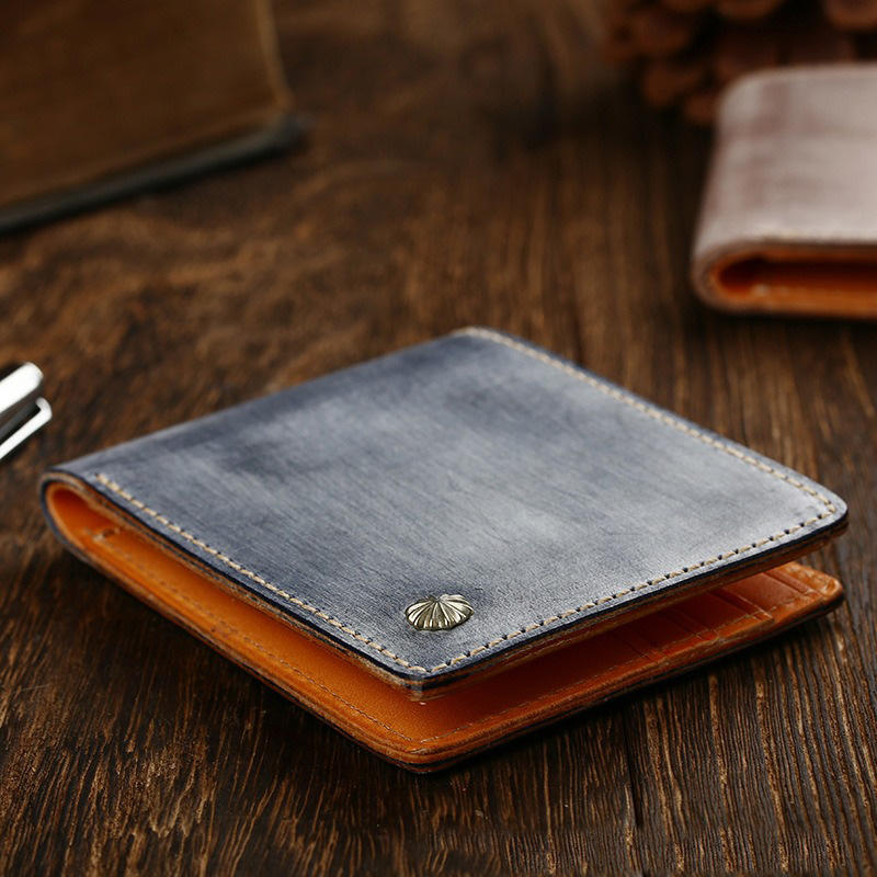 Vegetable Tanned Cowhide Inlaid with Silver Nails Matt Wax Vegetable Tanned Leather Simple Short Wallet Wealth Cloth