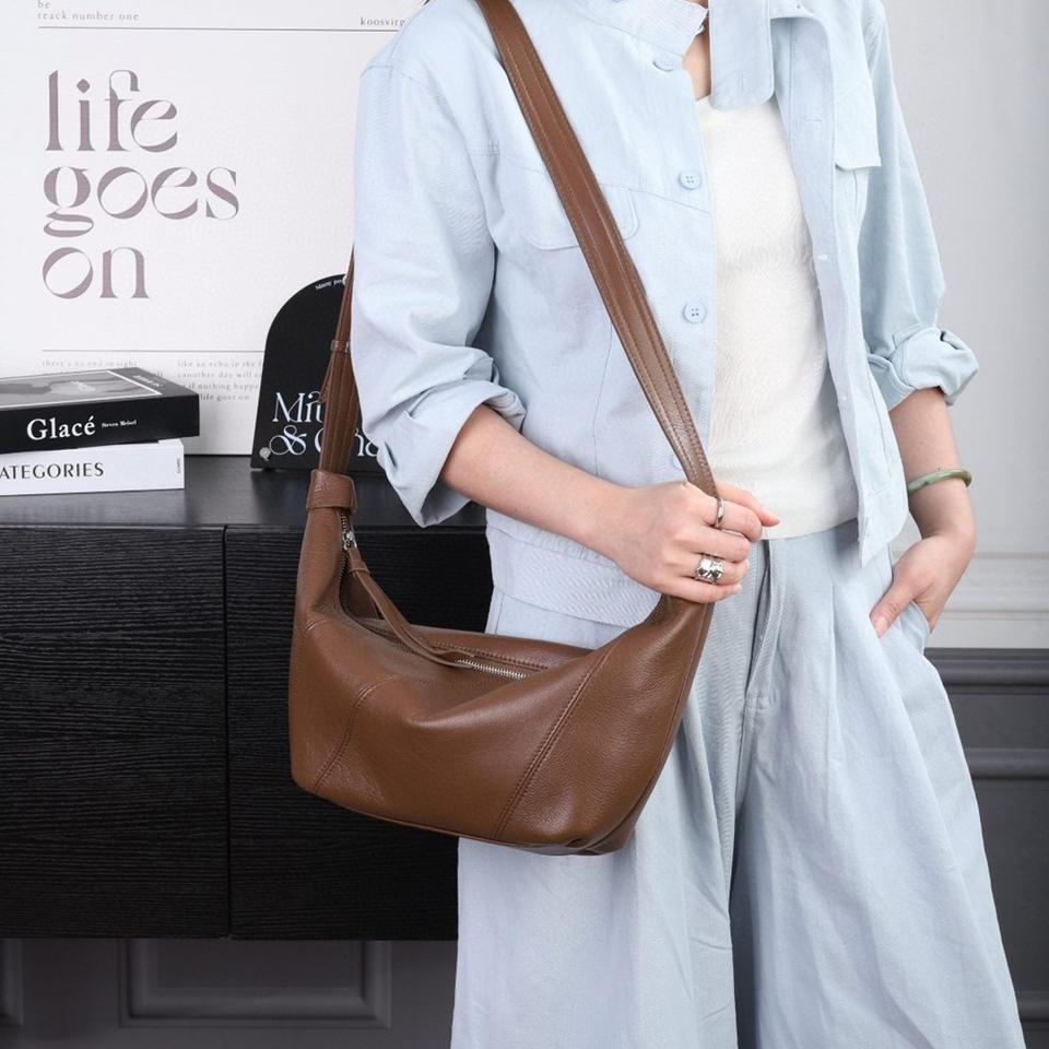 กระเป๋าสะพายไหล่หนังวัวฟอกฝาดสำหรับผู้หญิง กระเป๋าสะพายข้าง แฟชั่นลำลอง หนังแท้ กระเป๋าถือสุภาพสตรี